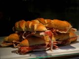 La gastronomía de la zona es excelente, e incluso si llegamos a deshoras a un bar, tendremos a nuestra disposición una solución tan buena como estos bocadillos de Jamón de Teruel