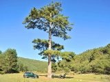 Salimos de Moscardón por la VF-TE-10 en dirección a Frías de Albarracín y poco después, y casi a pie de carretera, nos encontramos con el Pino Gordo, monumental ejemplar de pino negral (Pinus nigra), que cuenta con una altura de 30 metros y un perímetro de tronco de 3,60 metros.
